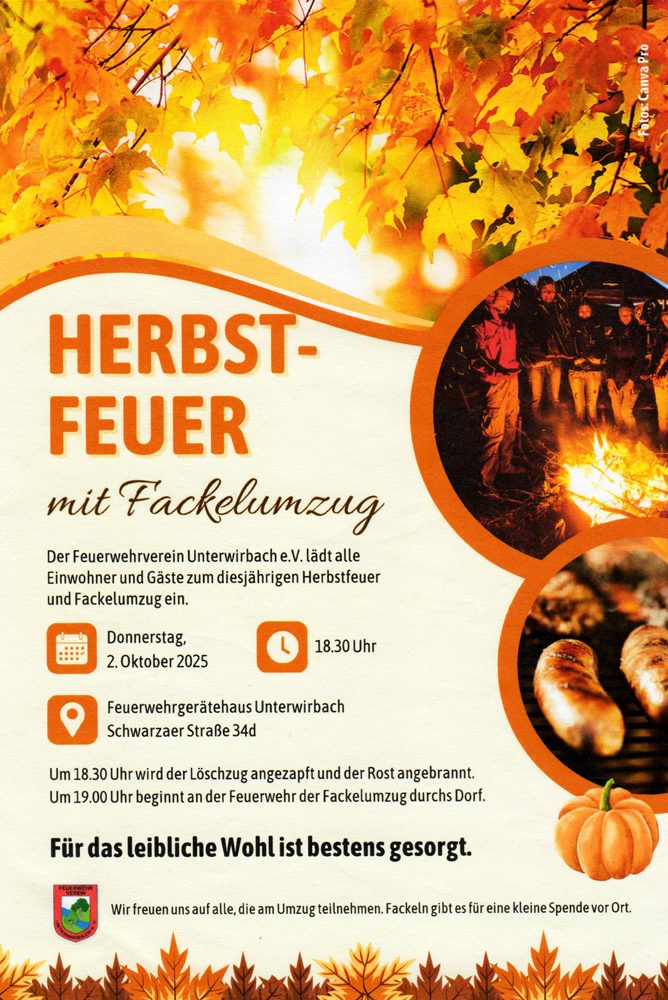 Am Donnerstag, den 02. Oktober findet wieder unser traditionelles Herbstfeuer statt.