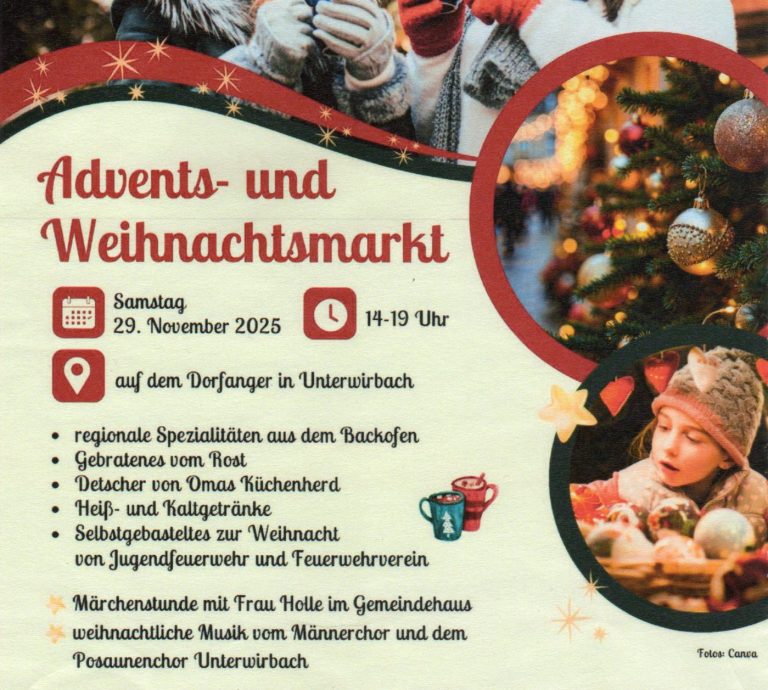 Samstag, 29.11.2025, 14-19 Uhr auf dem Anger in Unterwirbach.