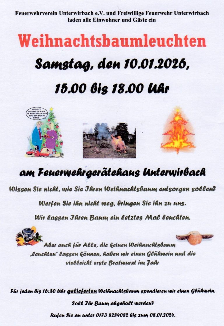 Samstag, 10.01.2026, 15:00 bis 18:00 Uhr am Feuerwehrgerätehaus in Unterwirbach.