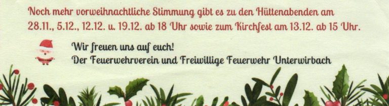 Samstag, 29.11.2025, 14-19 Uhr auf dem Anger in Unterwirbach.