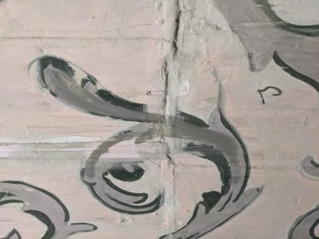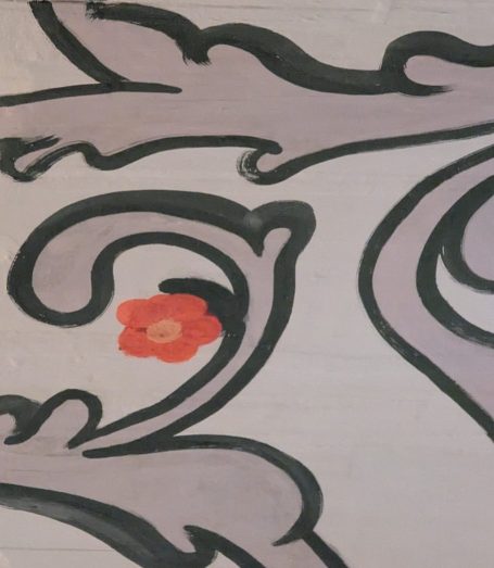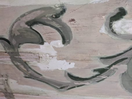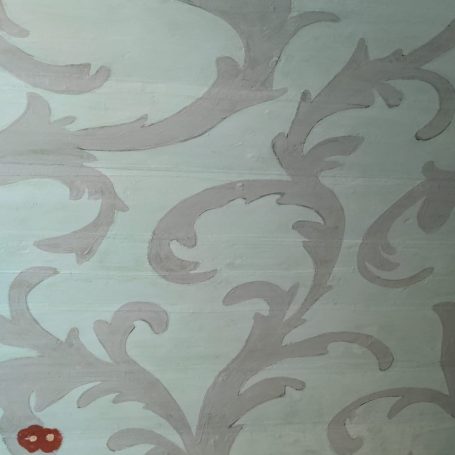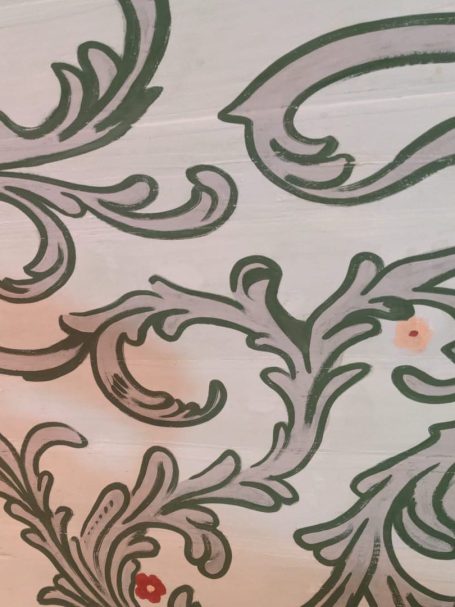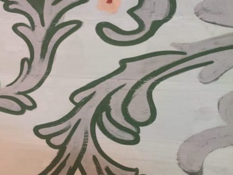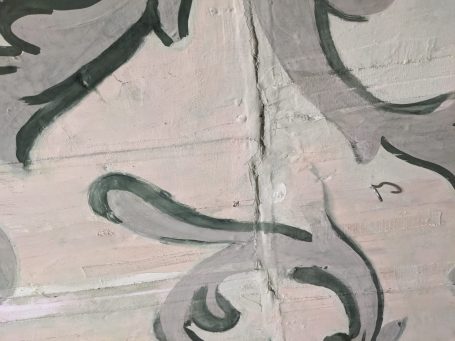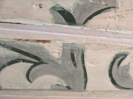 Farbflächen der Akanthus-Ranken, hellgrüner Hintergrund malermäßig restauriert.